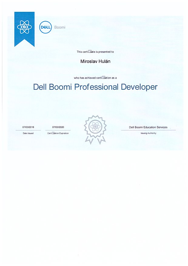 | 2018 | Dell Boomi - certifikát |